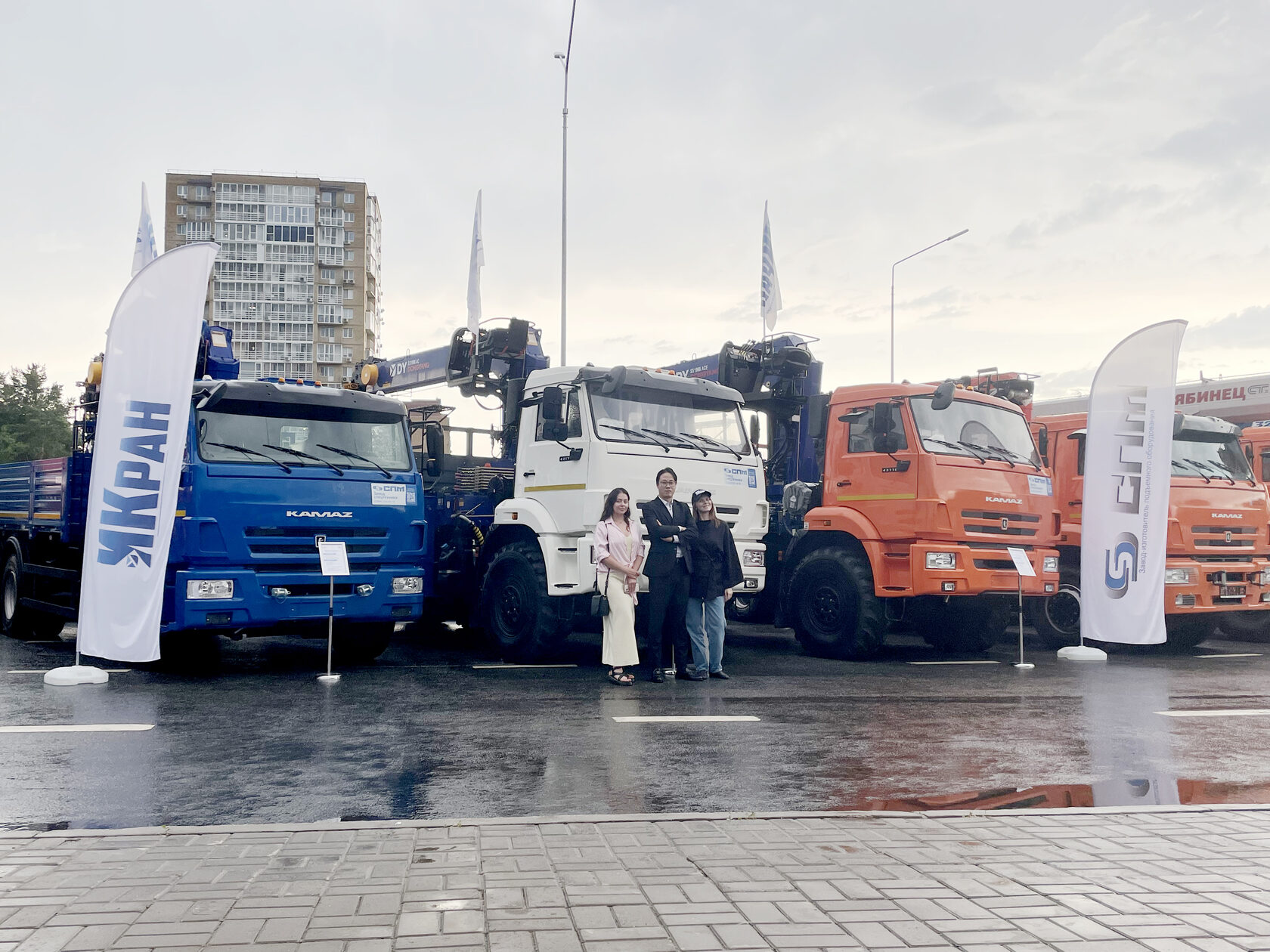 Компании ИКРАН и СПМ представили гостям три современных бортовых автомобиля с краново-манипуляторными установками собственного производства: